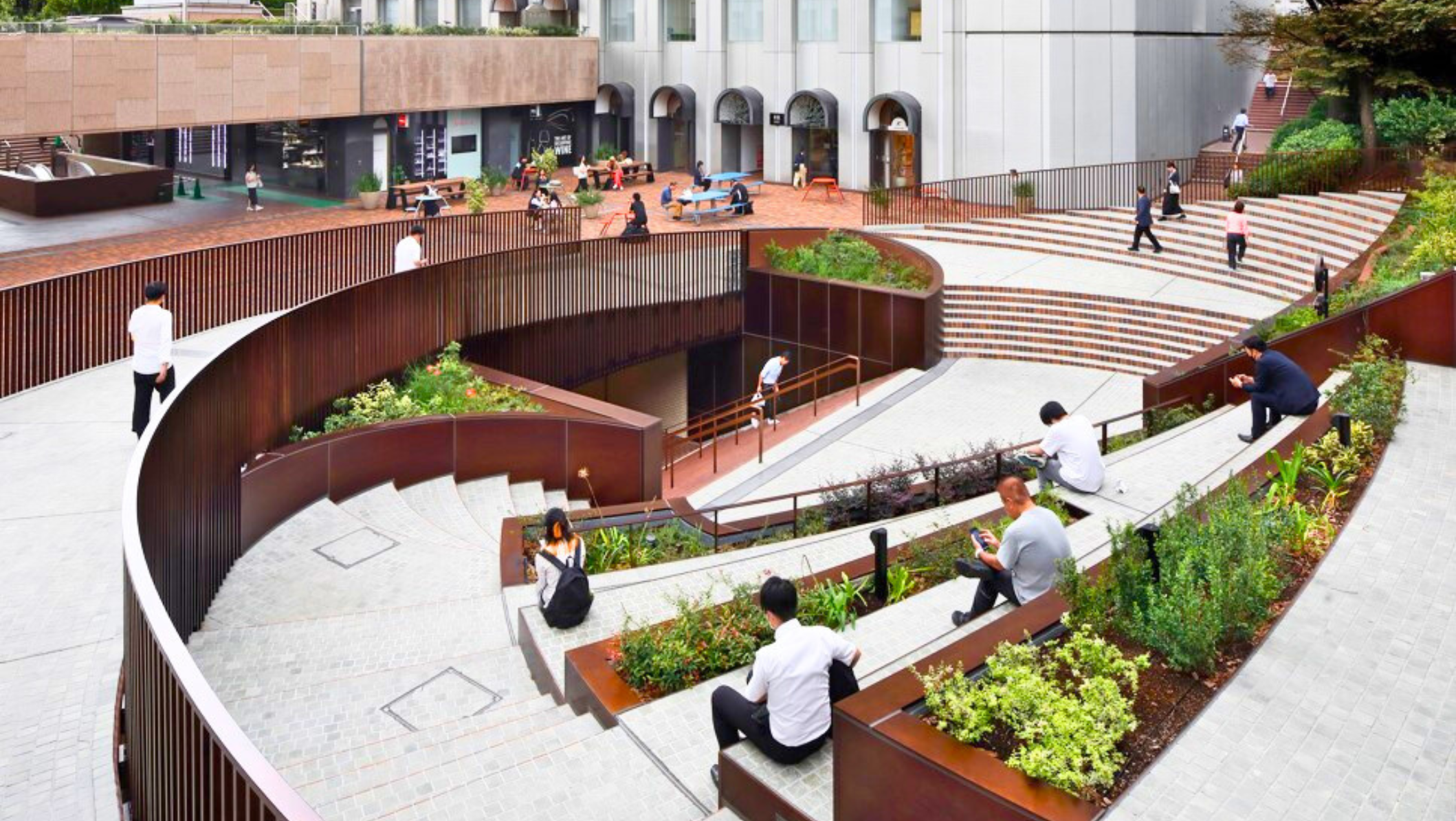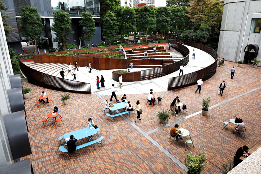 青山一丁目交差点に位置し、東京メトロ銀座線・半蔵門線・都営地下鉄大江戸線駅直結の好立地な新青山ビルの広場です。