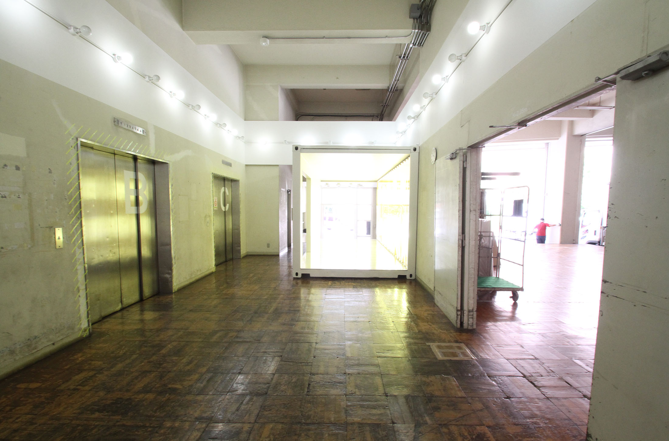 エントランスに突如現れる存在感溢れるコンテナスペースです。