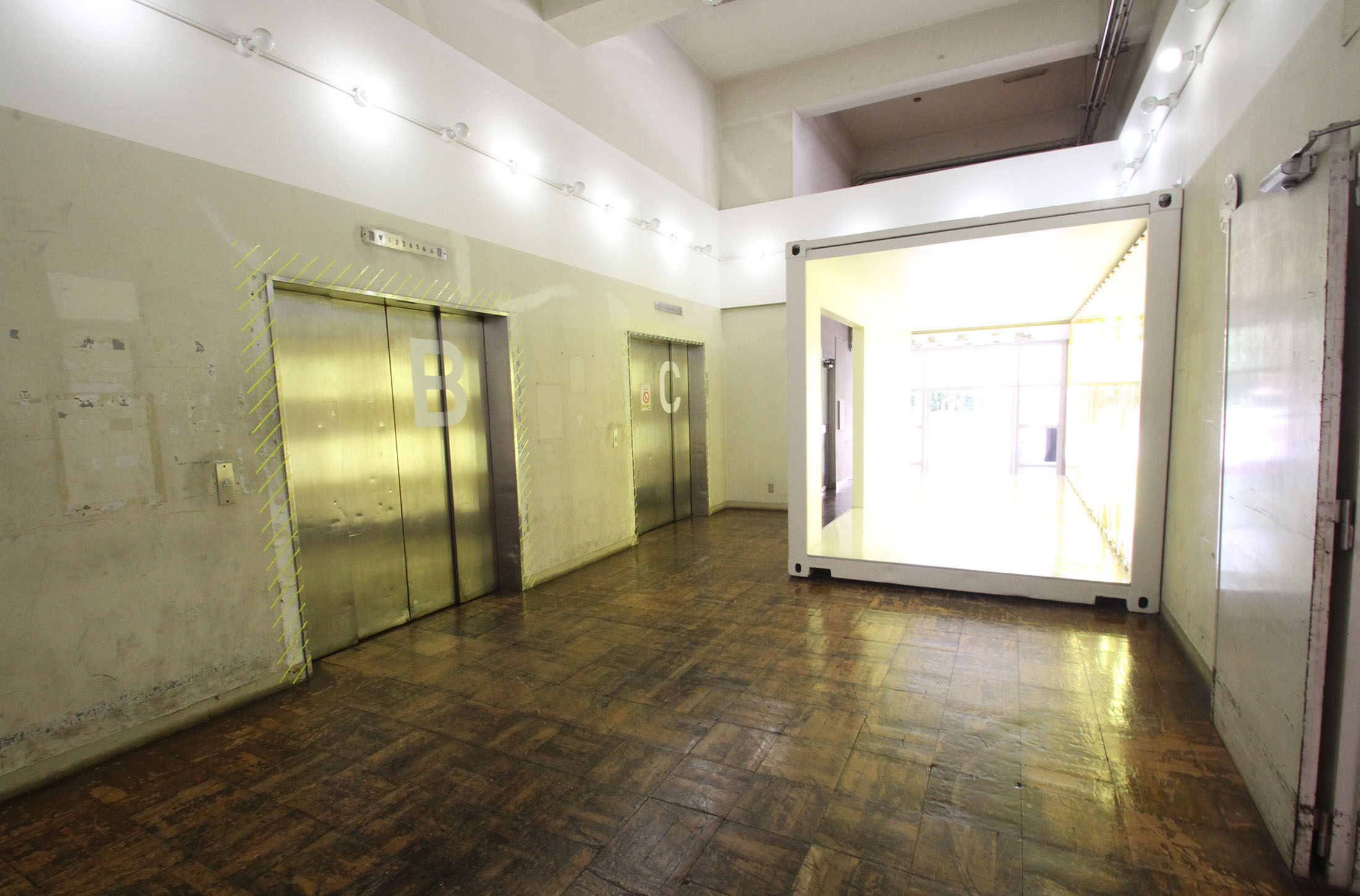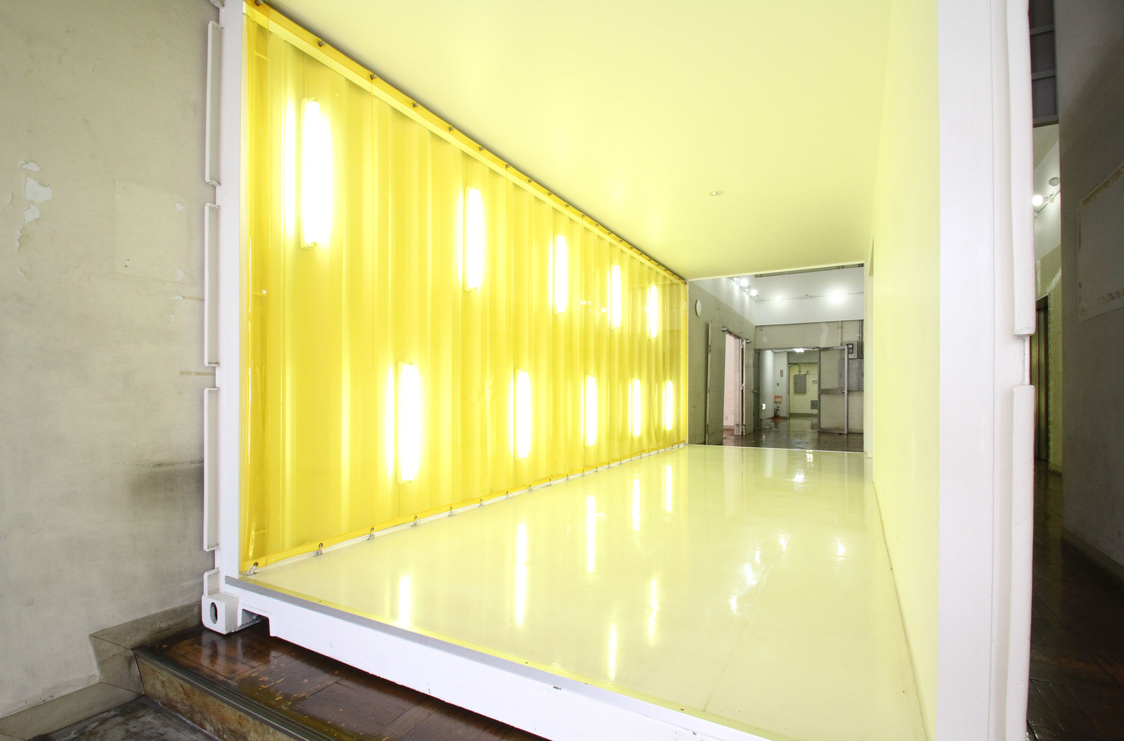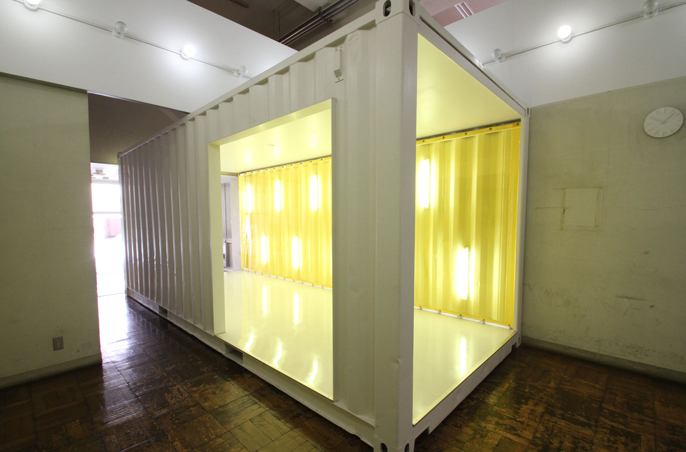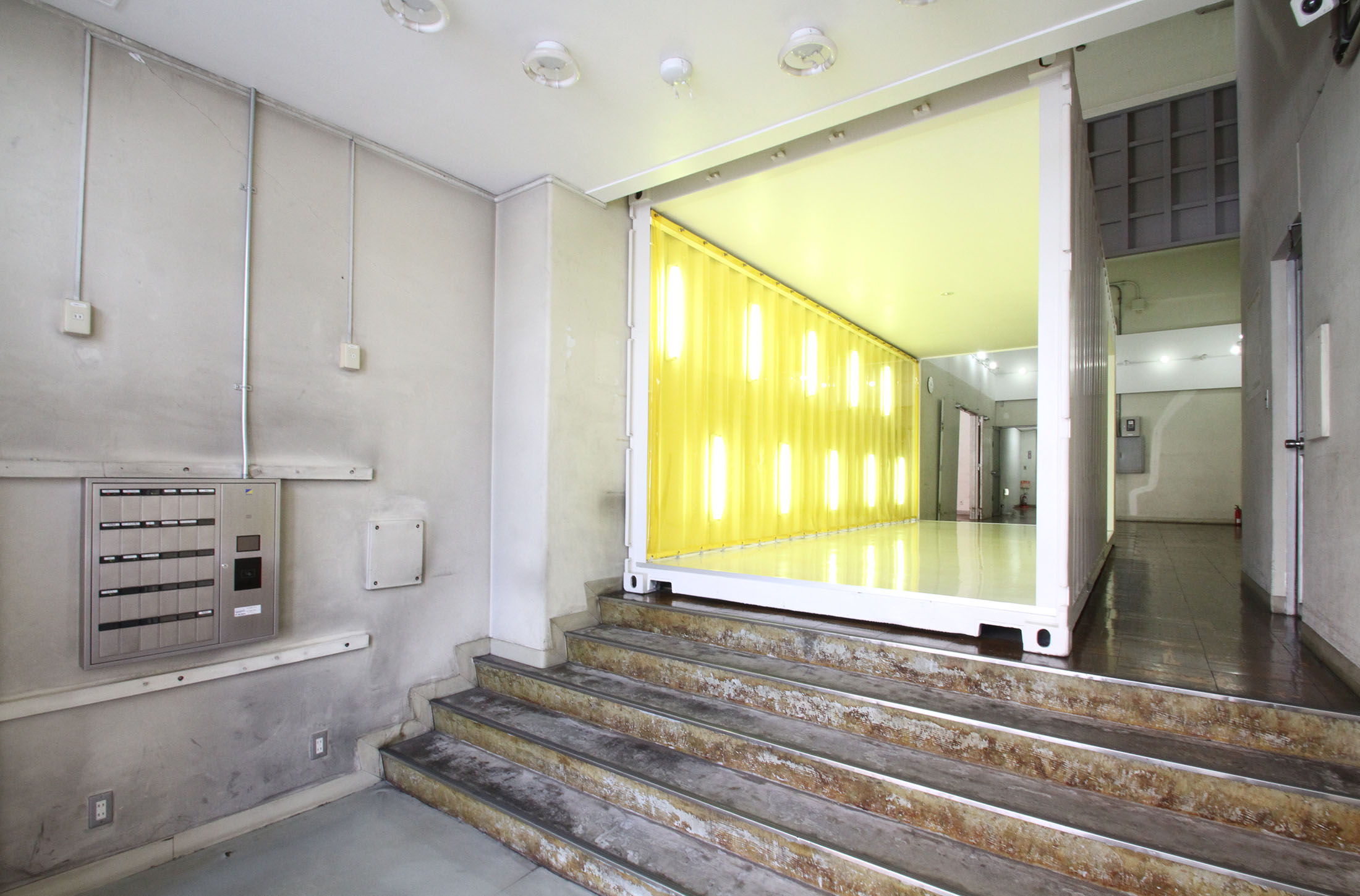 黄色い壁が特徴的なコンテナスペースと、エントランススペースをスチール・ムービーを問わず、撮影スタジオとしてのご利用に最適です。