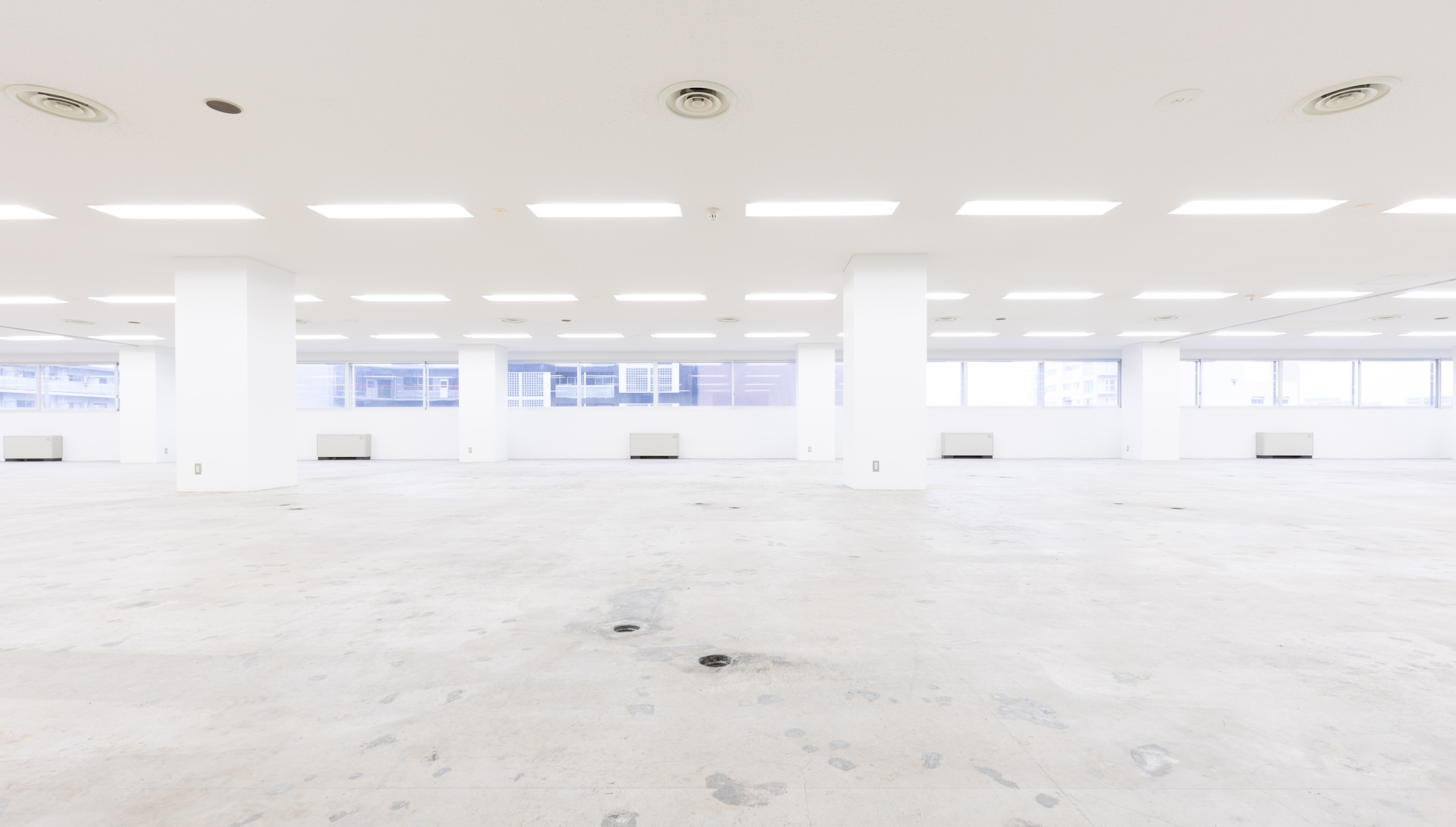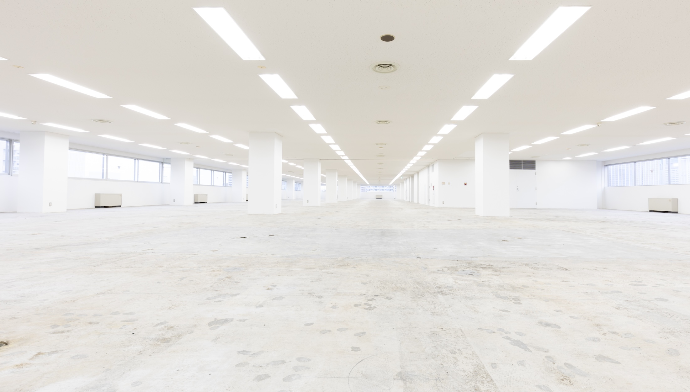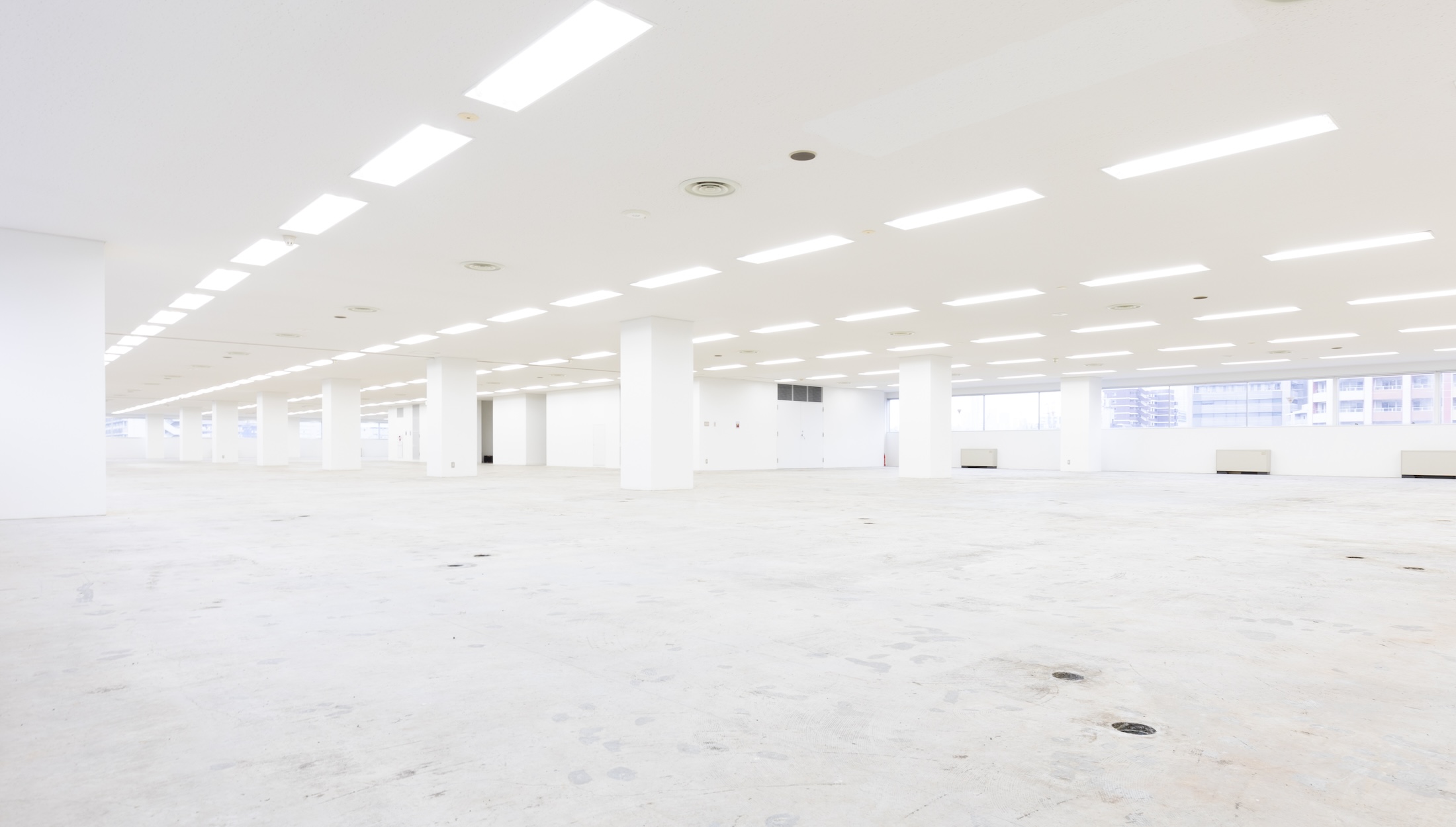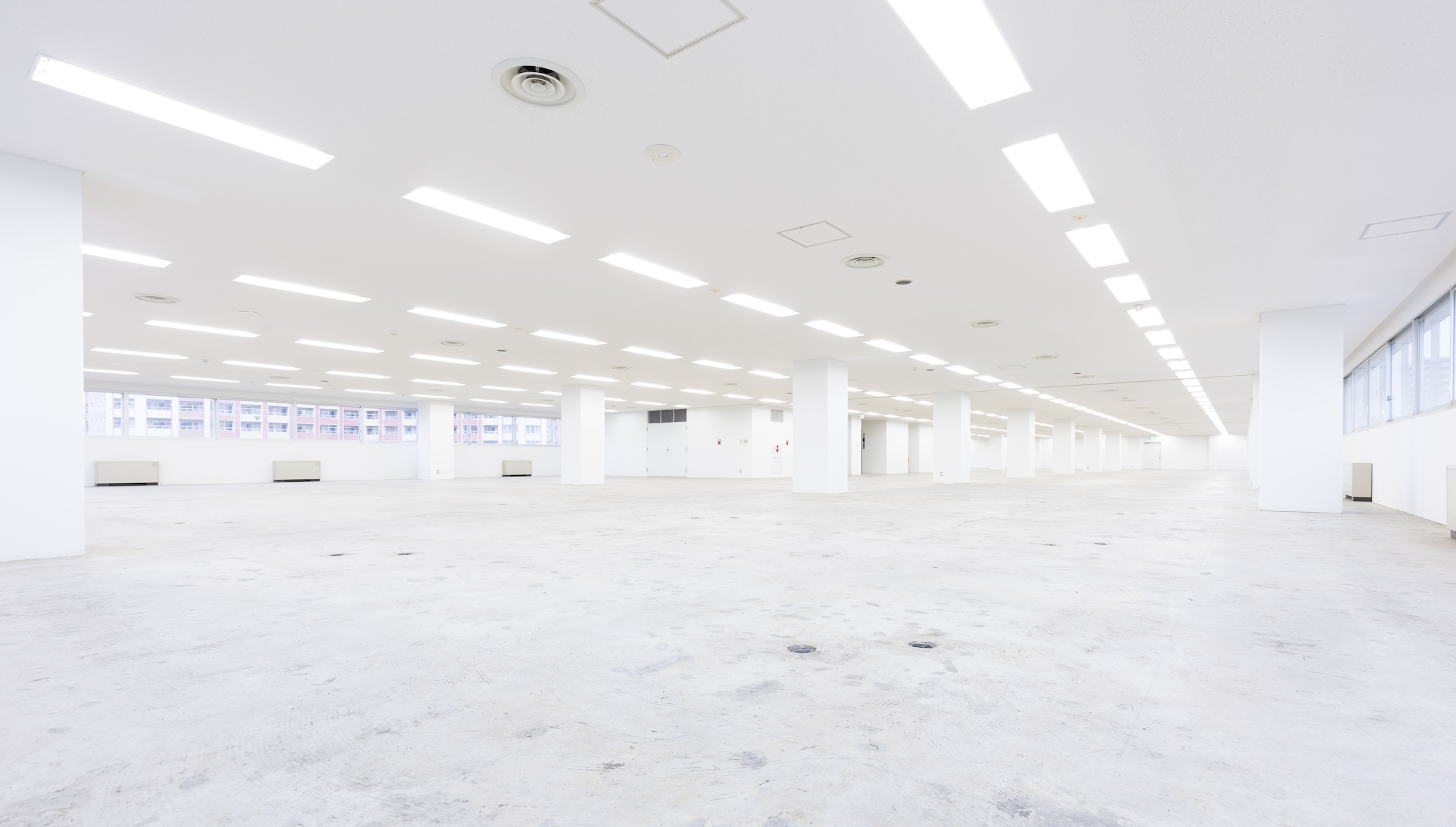 1300㎡という広大な空間。大掛かりな建て込みや長期間のレンタルについてもお気軽にご相談下さい。